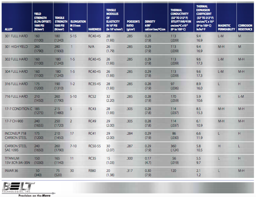 For most temperature ranges, stainless steel belts of any alloy will operate perfectly fine. For extreme temperature ranges, (both to the high and low extremes), you may want to consider a more suitable material with a lower thermal expansion coefficient, such as Invar® 36, Inconel®, or 17-7 CH900.